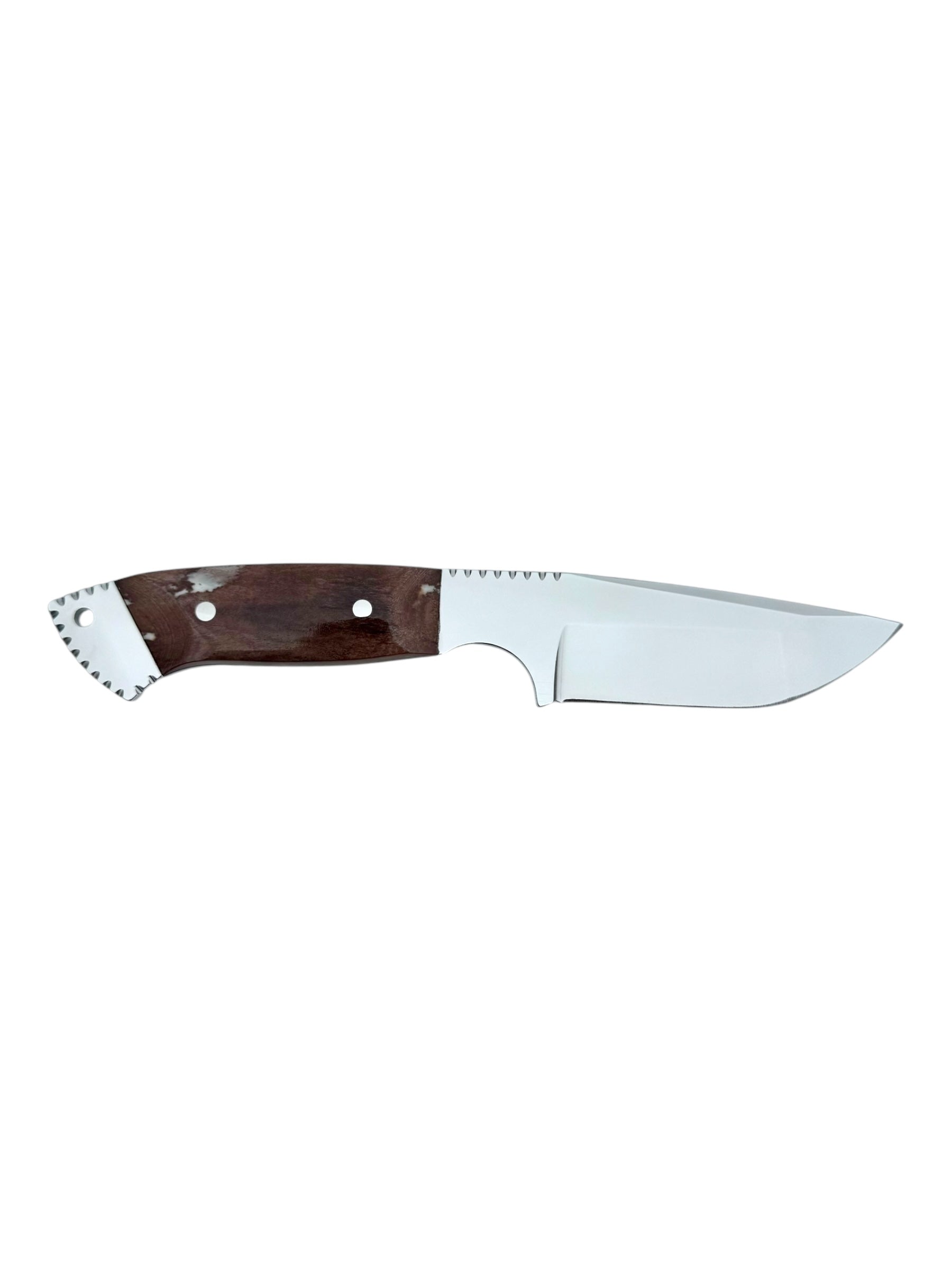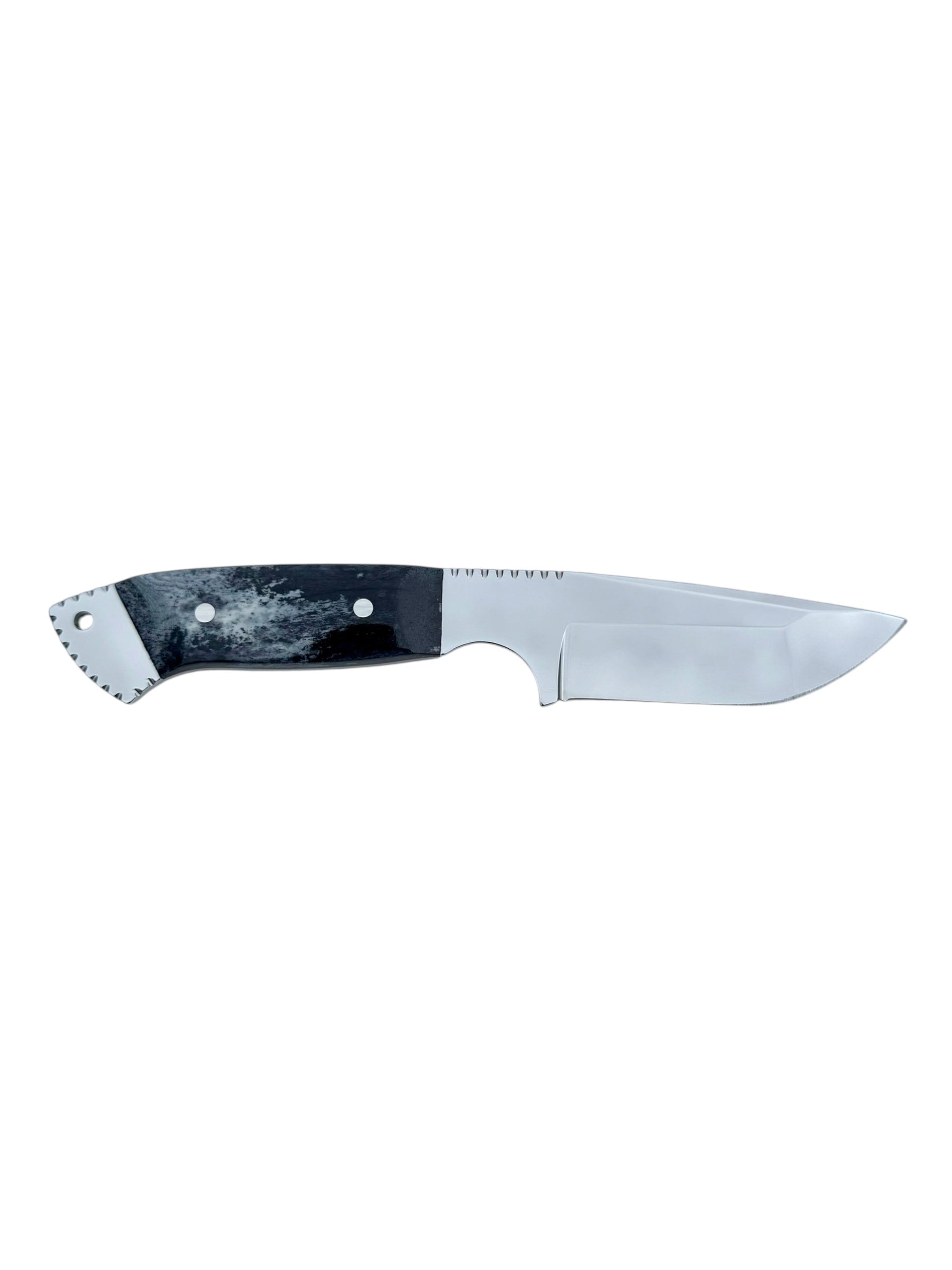 The handle of our skinning knife is a true work of art. Crafted from custom bone, each handle is unique, with its own distinct colors and character. Not only does the bone handle add a touch of elegance to the knife, but it also provides a comfortable and secure grip, allowing for precise and controlled handling in any situation. Every handle is meticulously glued into an inlay pocket in the knife for added strength and to ensure a waterproof seal. This construction not only enhances the knife’s durability but also adds to its aesthetic appeal.
